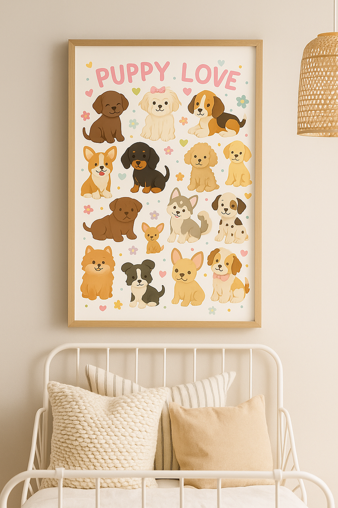 Puppy Love Wall Art – Cute Dog Print for Kids’ Room or Nursery